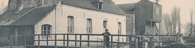 La Rhonelle coupant le village en deux, la passerelle attachée au moulin permettait aux piétons de passer « de l’autre côté de l’eau » comme aimaient à dire les Aulnésiens d’alors. Sinon, le passage se faisait par le gué existant à l’endroit où sera construit le pont en 1802.